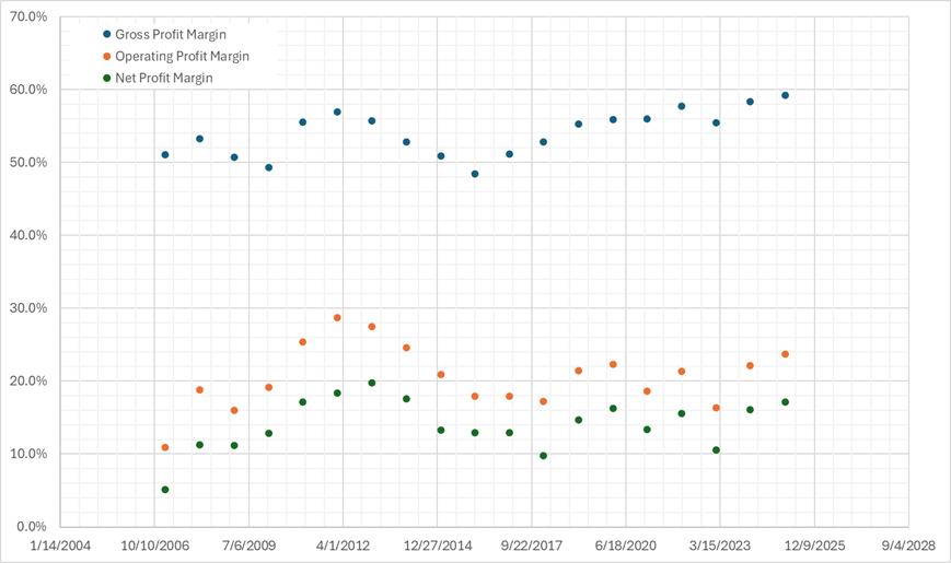 LULU Margin Rates from 2006 to 2025
